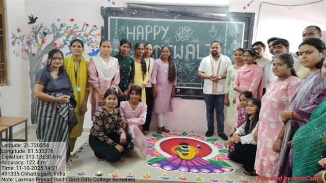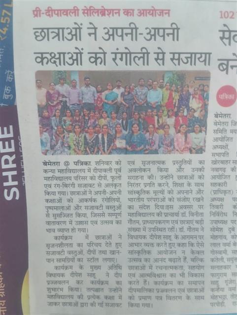 दिनांक 11.09.2025 दिन शनिवार को लक्ष्मण प्रसाद बैद्य शासकीय कन्या महाविद्यालय बेमेतरा परिसर आयोजित प्री.दिवाली सेलिब्रेशन कार्यक्रम का आयोजन किया गया